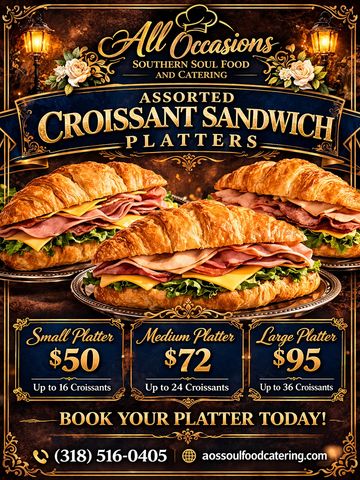 Our Croissant Sandwich Platter is a crowd-pleasing favorite, perfect for any gathering. Flaky, buttery croissants are generously filled with fresh deli meats, crisp lettuce, and sliced cheese to create a delicious variety of sandwiches. Individually wrapped condiments are included for added convenience, letting your guests customize to their taste. Beautifully arranged and ready to serve, this platter is ideal for office lunches, parties, or family celebrations.
